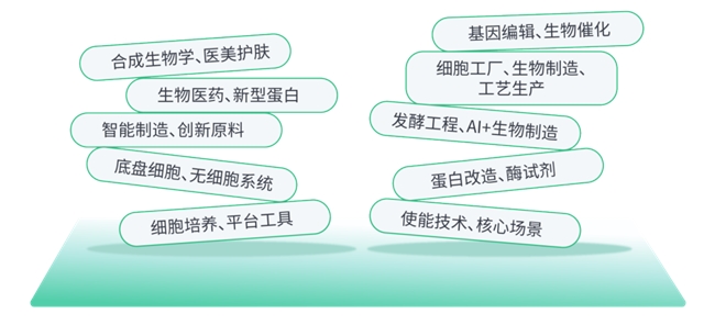 尤其是随着基因组学、蛋白质组学等组学技术,以及AI应用产业化的飞速发展,带动了以信息化与生命科学为主的生物制造逐渐走向生物智造,由此发展出一个新的合成生物学领域,生物制造则借助合成生物学的力量,突破了传统生物制造的局限性 。通过改造微生物或细胞,使其能够高效合成目标产物,甚至生产自然界中不存在的新型化合物。生物制造不仅提高了生产效率、降低了成本,还减少了环境污染,实现了绿色、高效和可持续的发展。