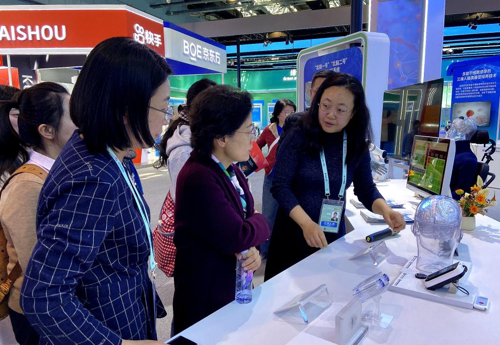 在中关村国际创新中心举办的展览上,各种机器人、数字人、沉浸式虚拟体验等创新产品为观众带来浓浓的“科技感”。中国自主研发的智能脑机系统“北脑一号”“北脑二号”受到广泛关注。展台前,北京芯智达神经技术有限公司业务发展总监李园介绍“人工智能等技术的发展进步,推动了脑机接口产品的开发及应用。”